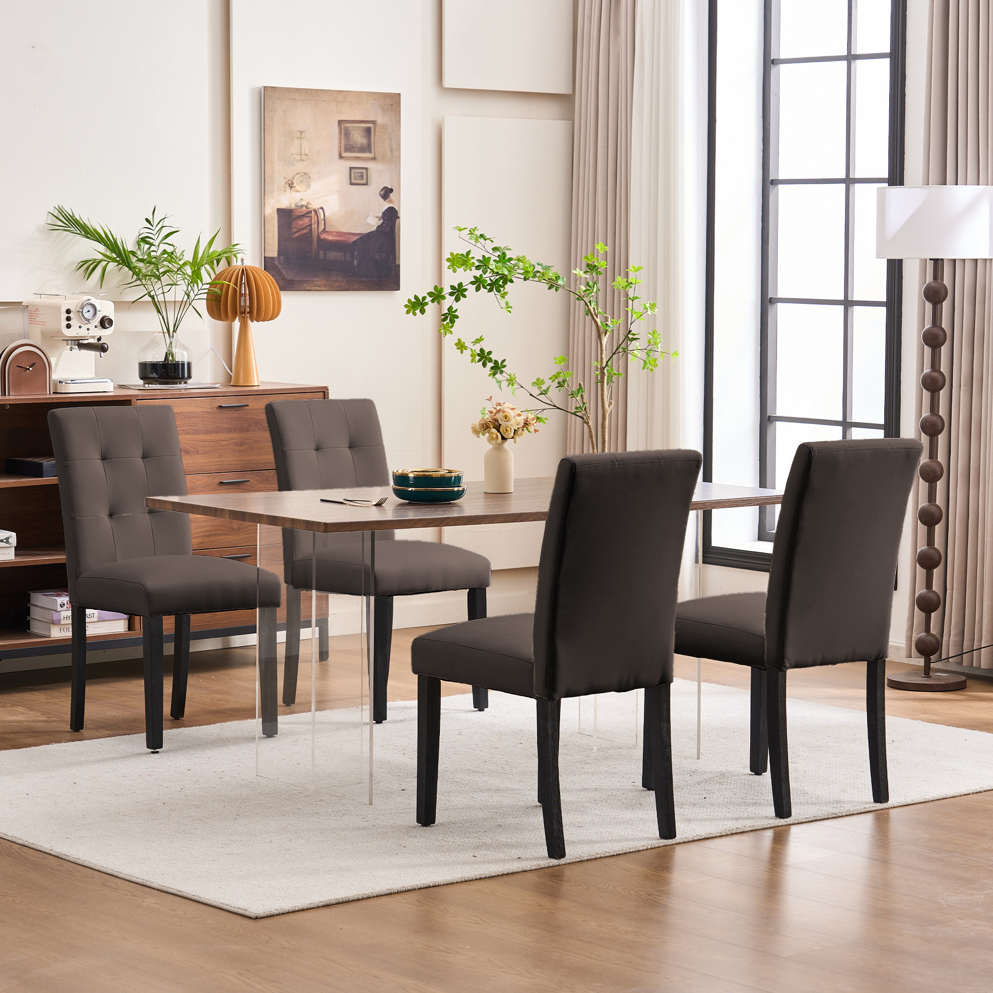Sleek & Modern Design – Elevate your dining space with these sophisticated faux PU leather chairs. featuring clean lines and a polished look that complements any decor.